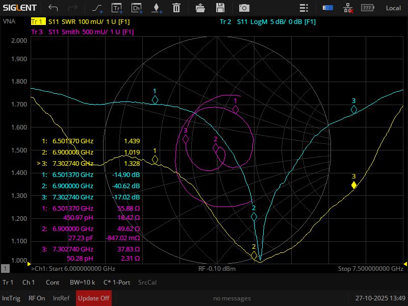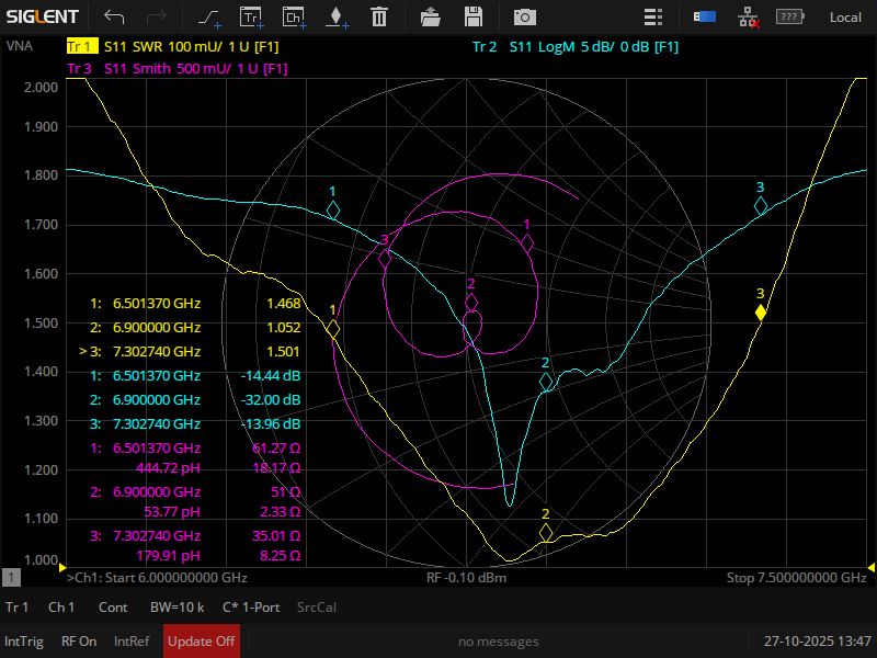 Центр діапазону 6.9ГГц (КСХ 1.02 - 1.06)